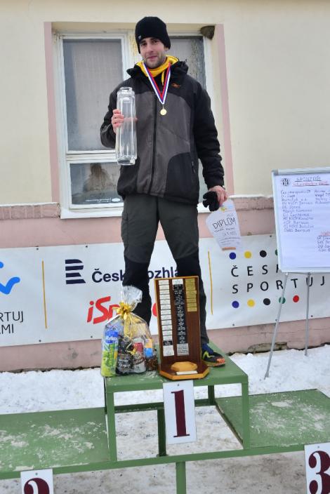 Zmrzlý podklad donutil mnoho závodníků obout tretry a diváci tak byli svědky neobvyklého klapavého doprovodu. Ze silnice sbíhal do terénu na vedoucí pozici Dan Kupidlovský. V lesních partiích již převažoval zasněžený terén, se kterým si nejlépe poradila dvojice Mach - Hostička a do závěrečné silniční pasáže vběhla se značným náskokem na pronásledovatele. Tomáš Mach pak nasadil ke zdrcujícímu závěru a zlomil jakékoliv pochybnosti o své dnešní dominanci.
