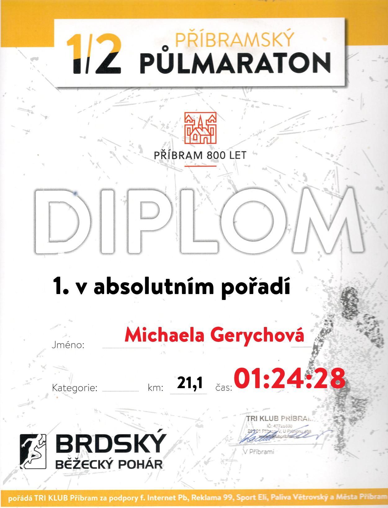 | 1 . Diplom | 01:24:28 | Gerychová | Michaela | 1982 | Zaječov | 200 | 1. | 200 |