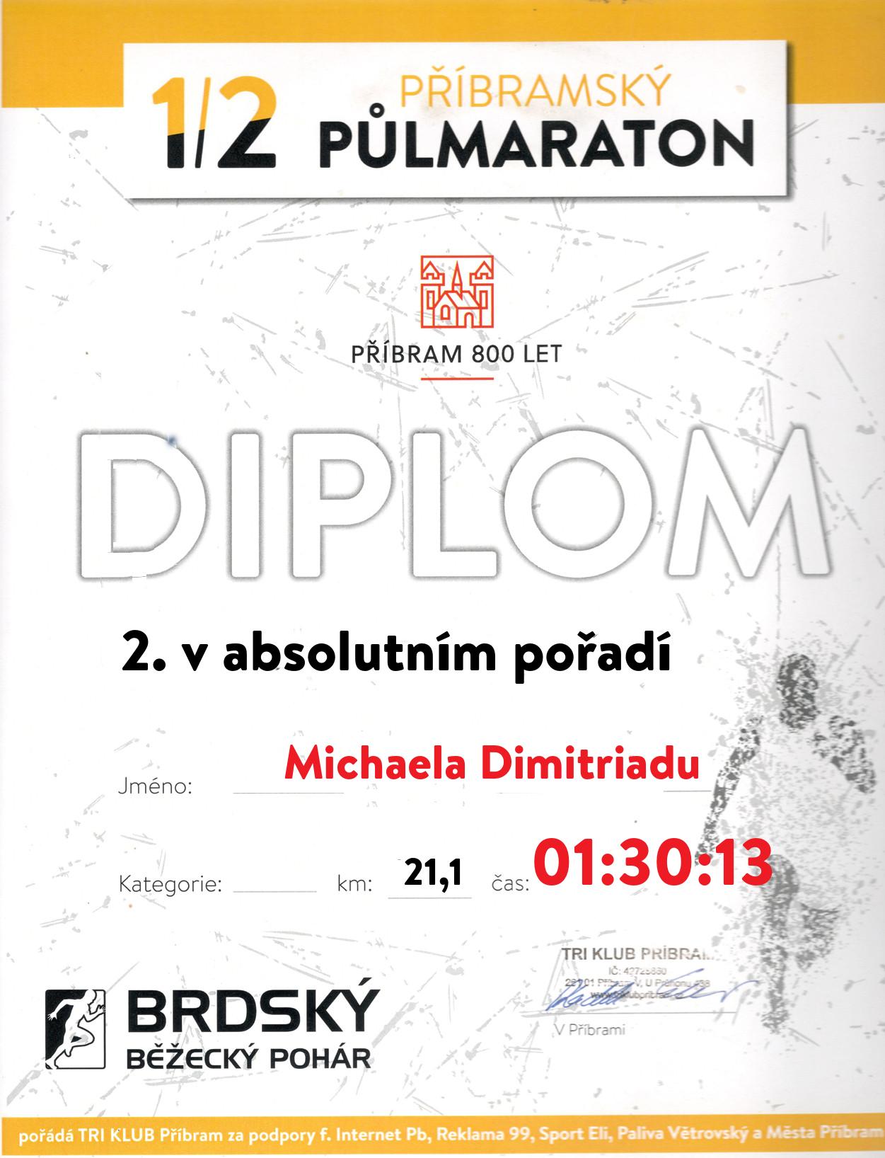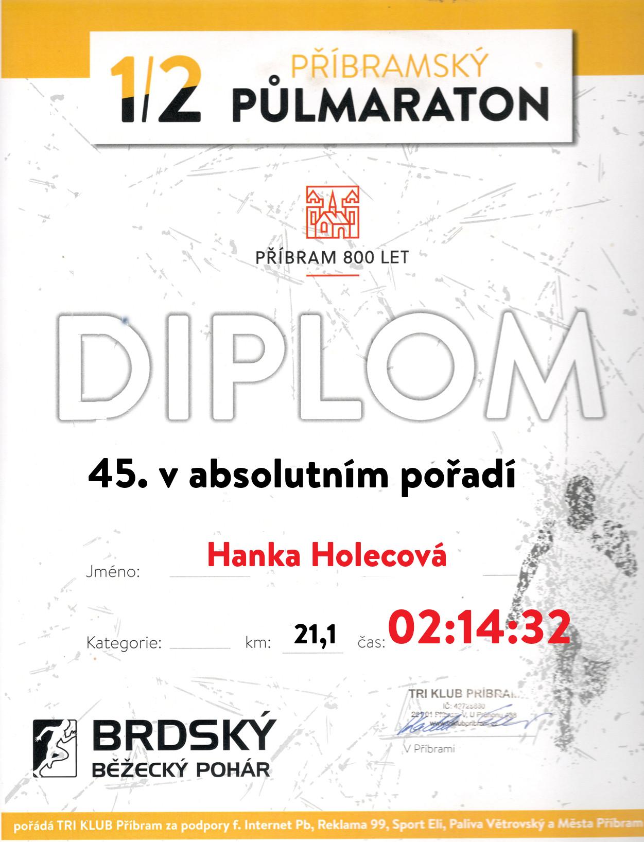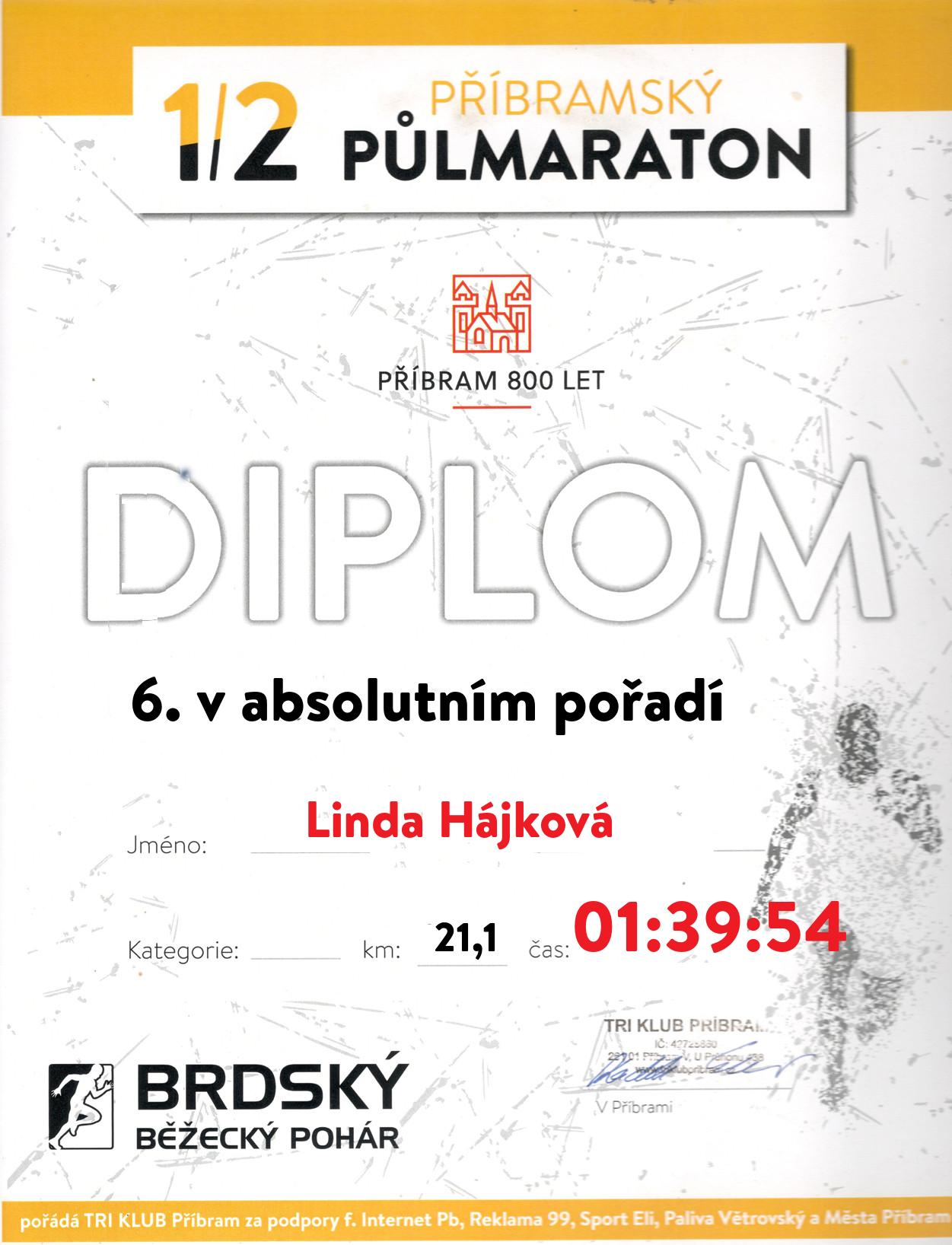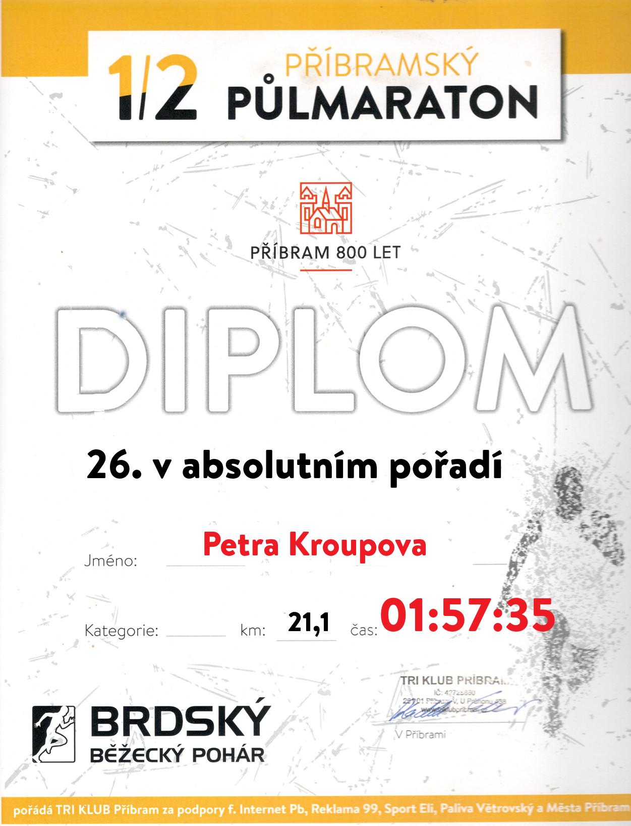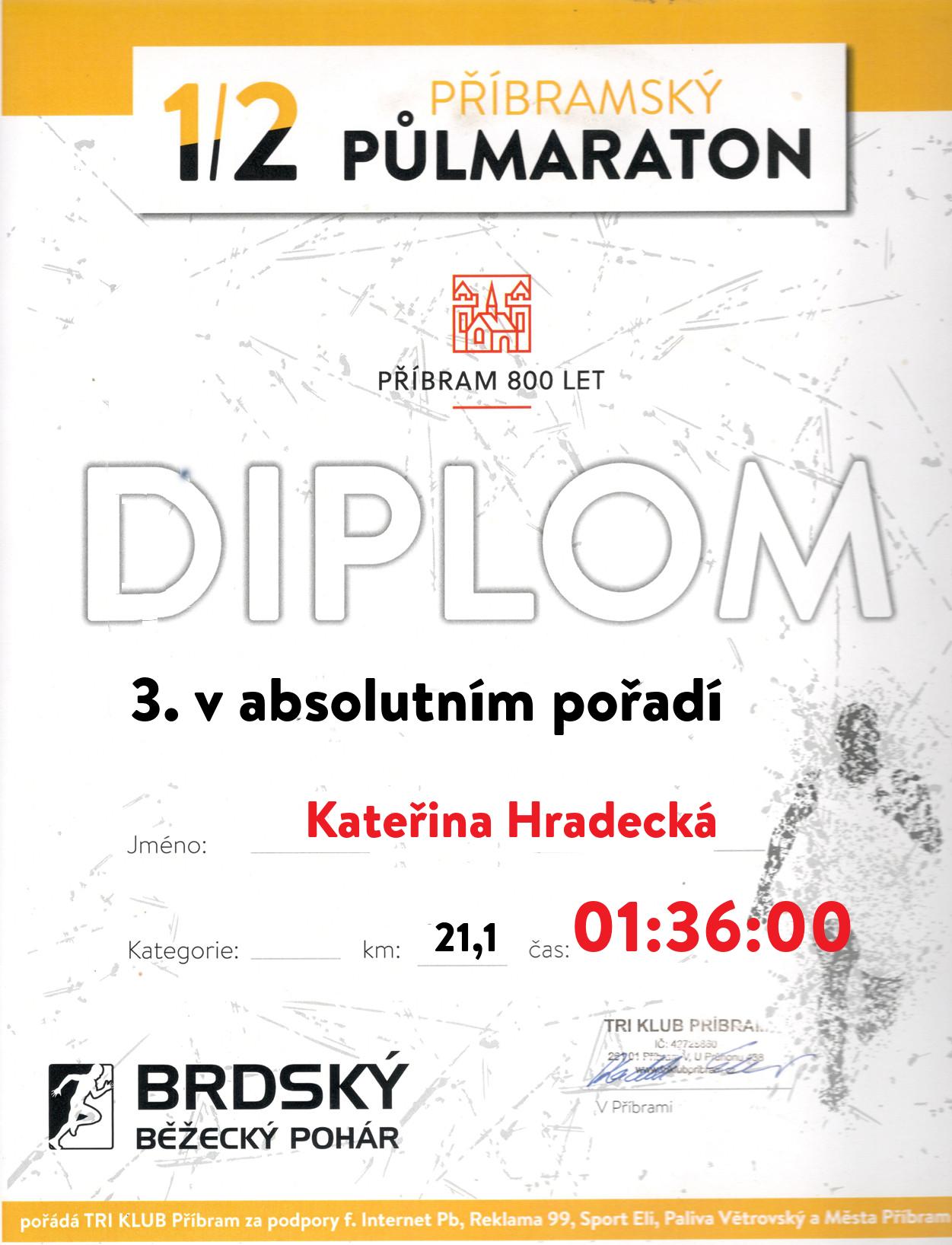 | 3 . Diplom | 01:36:00 | Hradecká | Kateřina | 1982 | Internet Příbram | 190 | 2. | 195 |