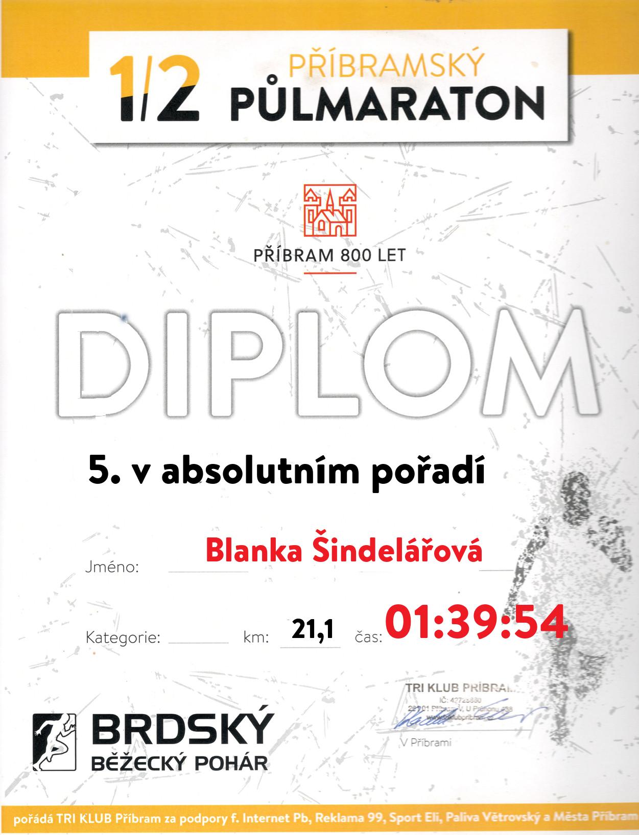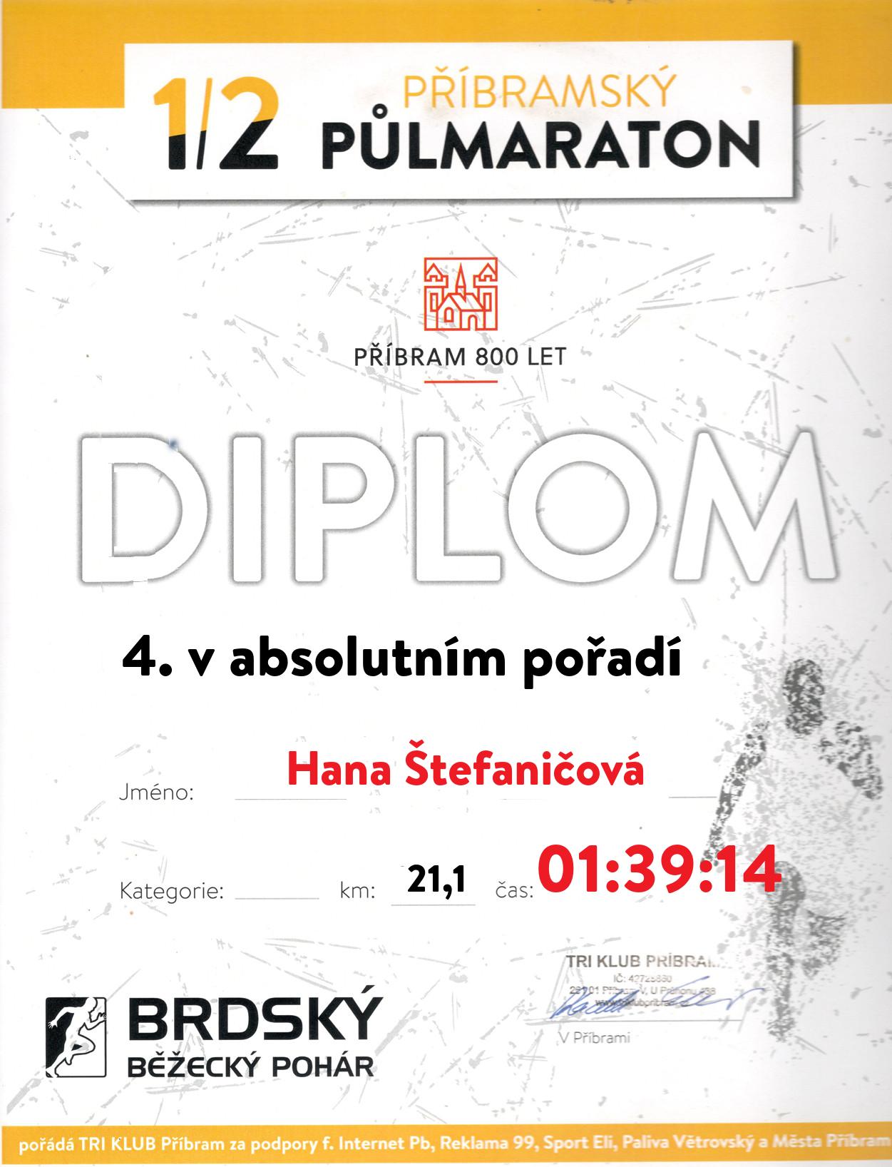 | 4 . Diplom | 01:39:14 | Štefaničová | Hana | 1976 | Příbram | 185 | 3. | 190 |
