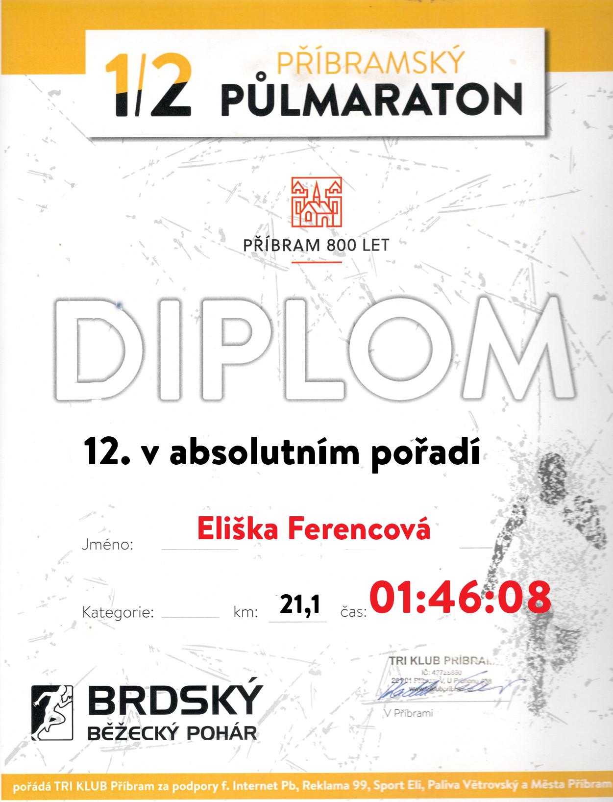 | 12 . Diplom | 01:46:08 | Ferencová | Eliška | 1990 | 152 | 4. | 185 | |