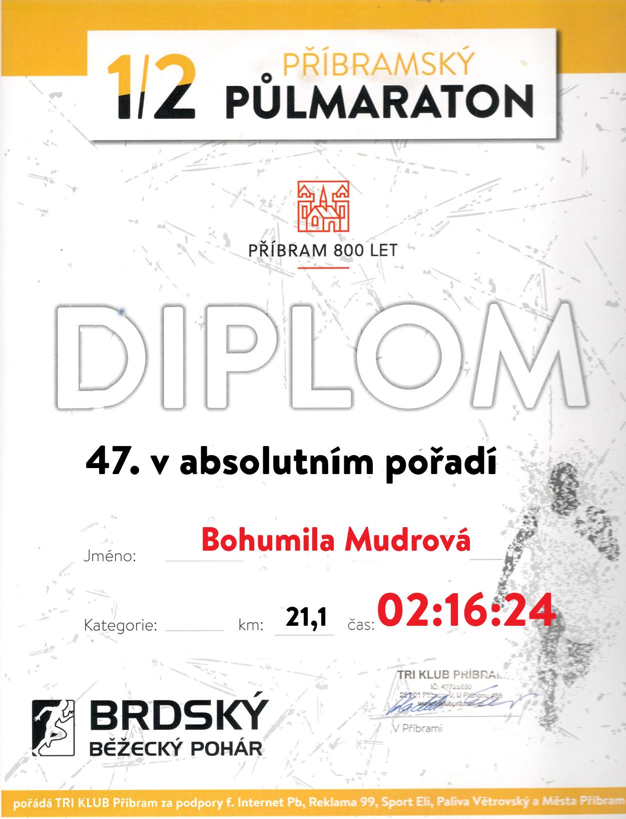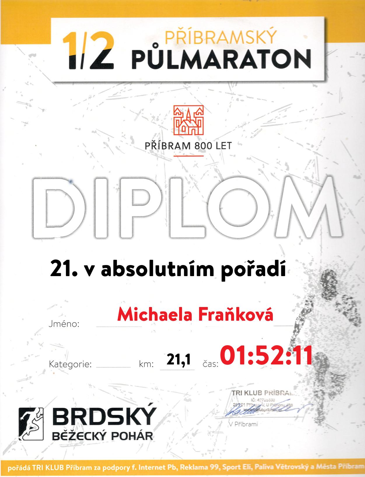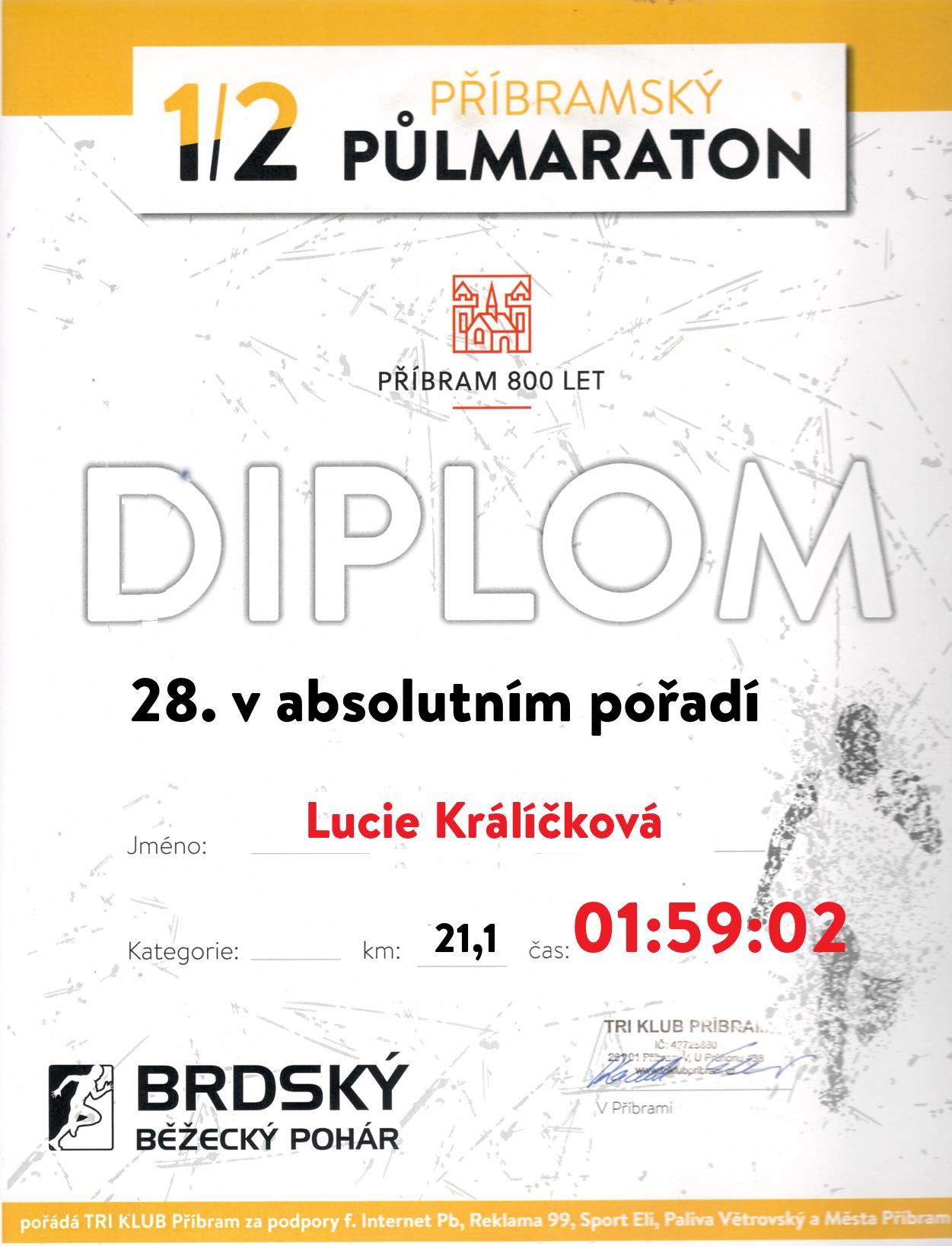 | 20 . Diplom | 01:51:35 | Urešová | Sylvie | 1976 | Příbram | 125 | 8. | 168 |