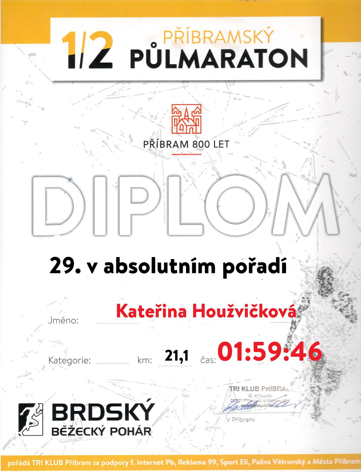 | 29 . Diplom | 01:59:46 | Houžvičková | Kateřina | 1984 | Příbram | 102 | 11. | 156 |
