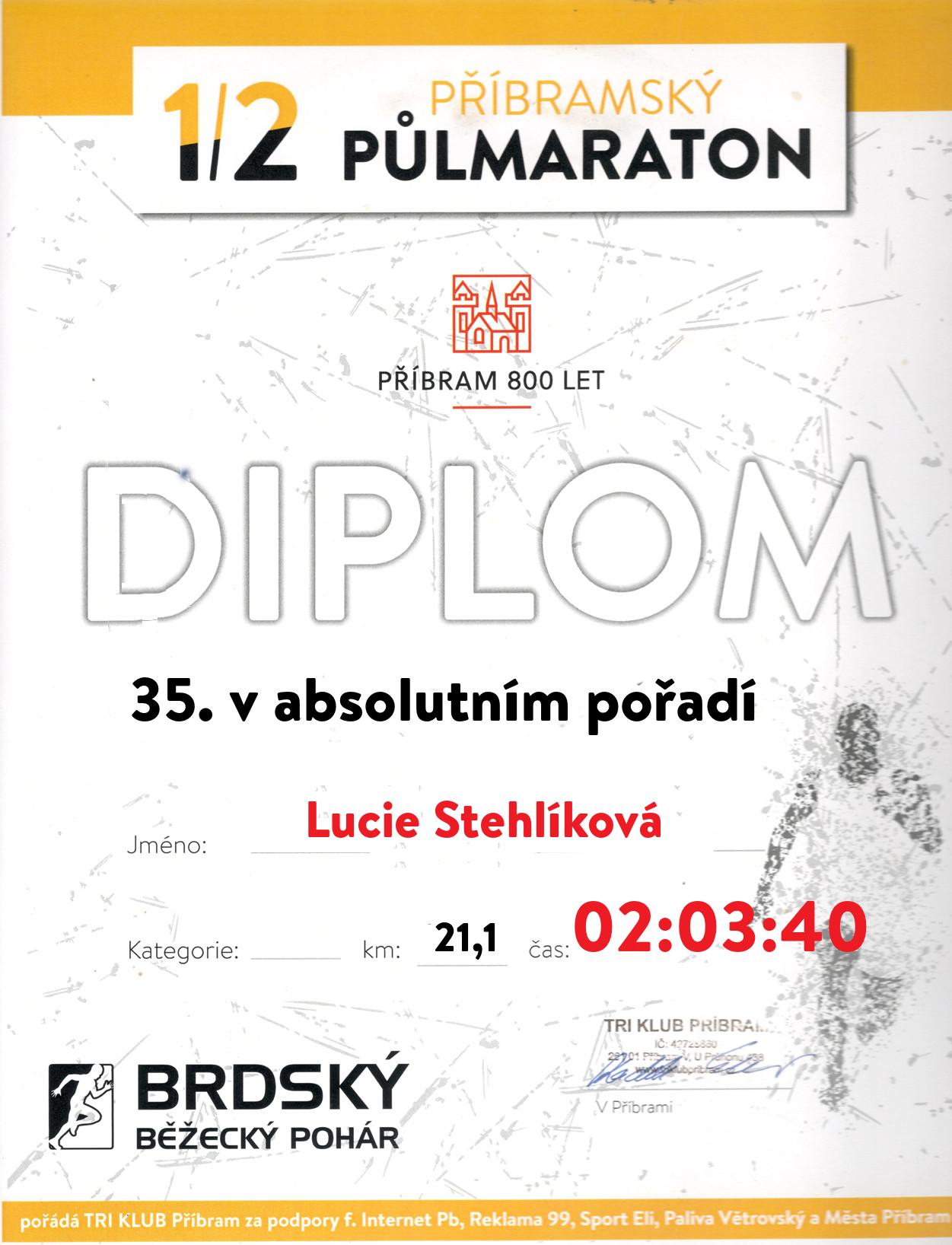 | 35 . Diplom | 02:03:40 | Stehlíková | Lucie | 1986 | Příbram | 90 | 13. | 148 |