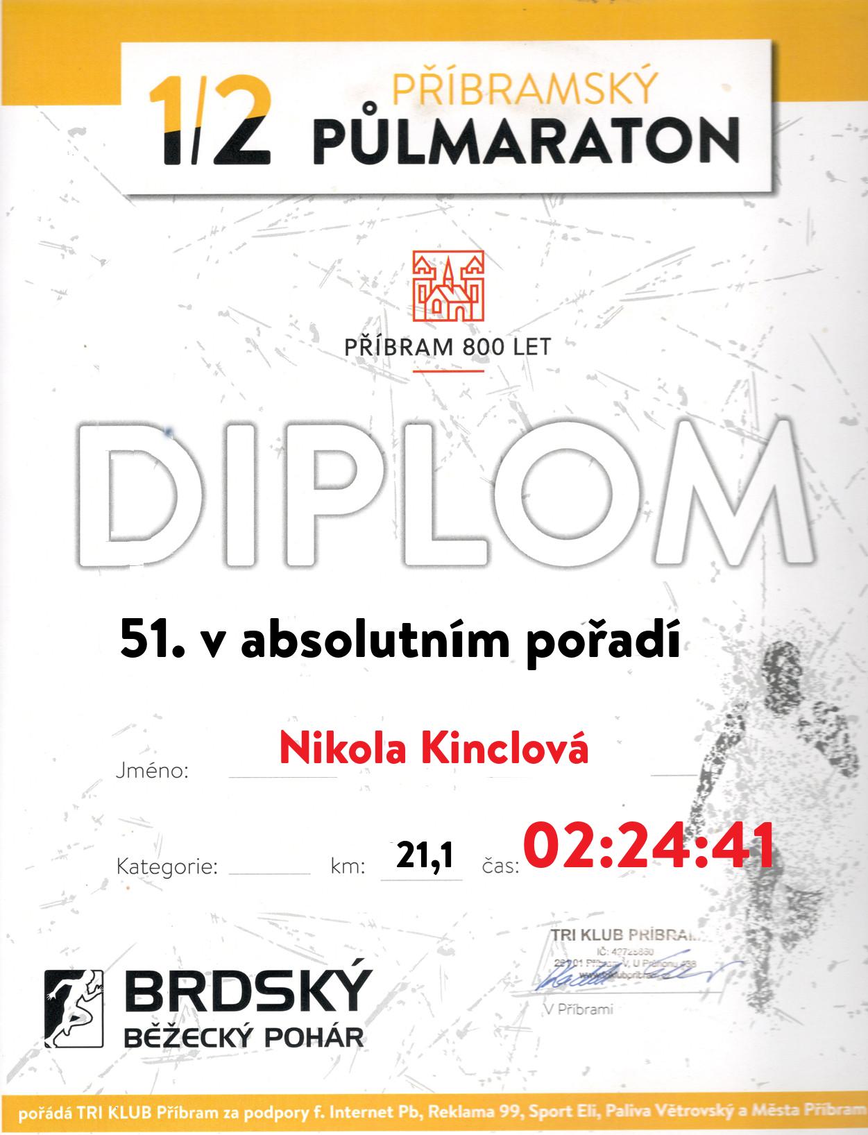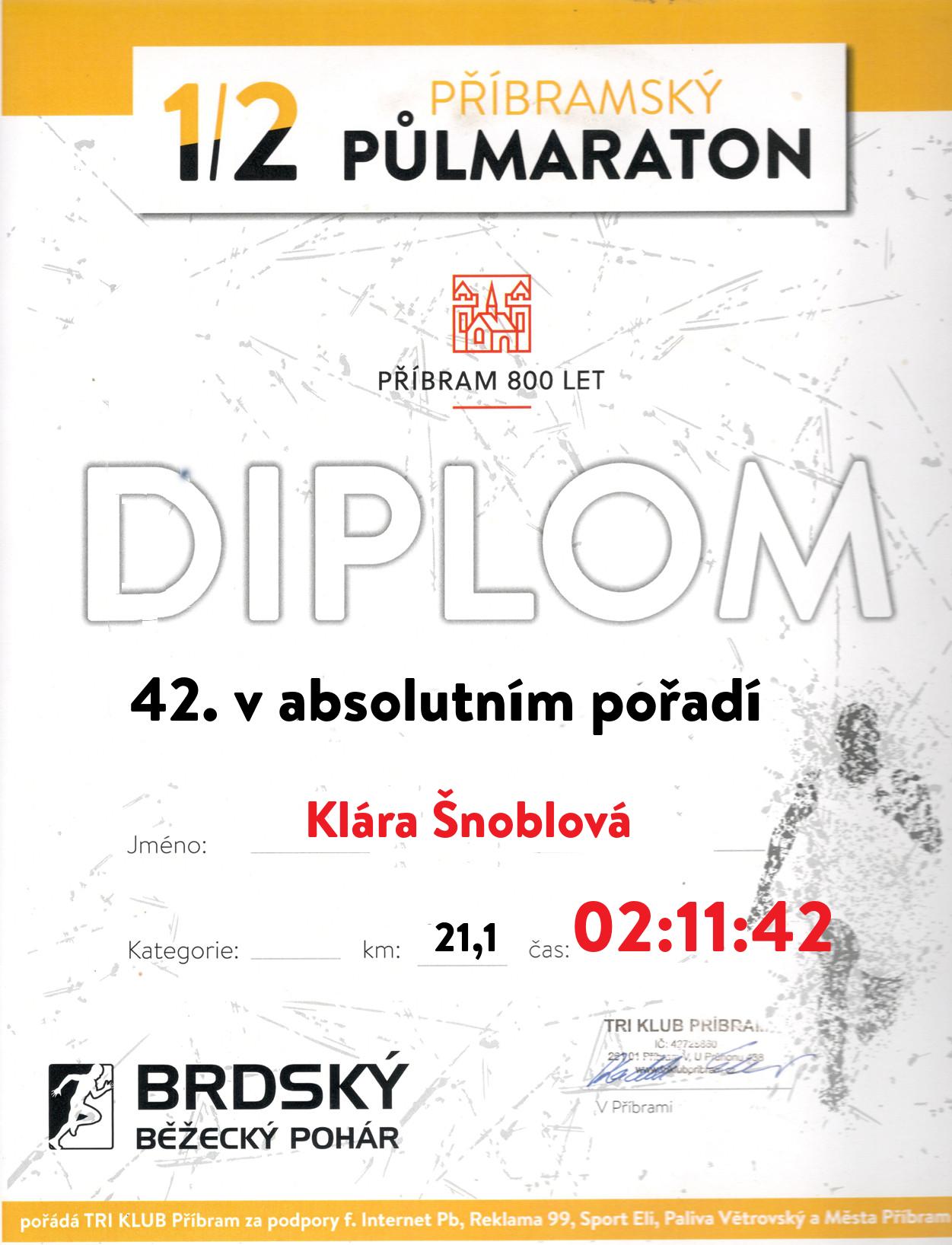 | 49 . Diplom | 02:21:55 | Nová | Karolína | 1999 | Příbram | 62 | 1. | 200 |