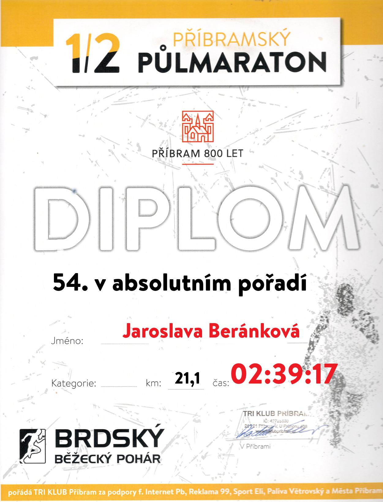 | 54 . Diplom | 02:39:17 | Beránková | Jaroslava | 1962 | Žebrák | 52 | 3. | 190 |
