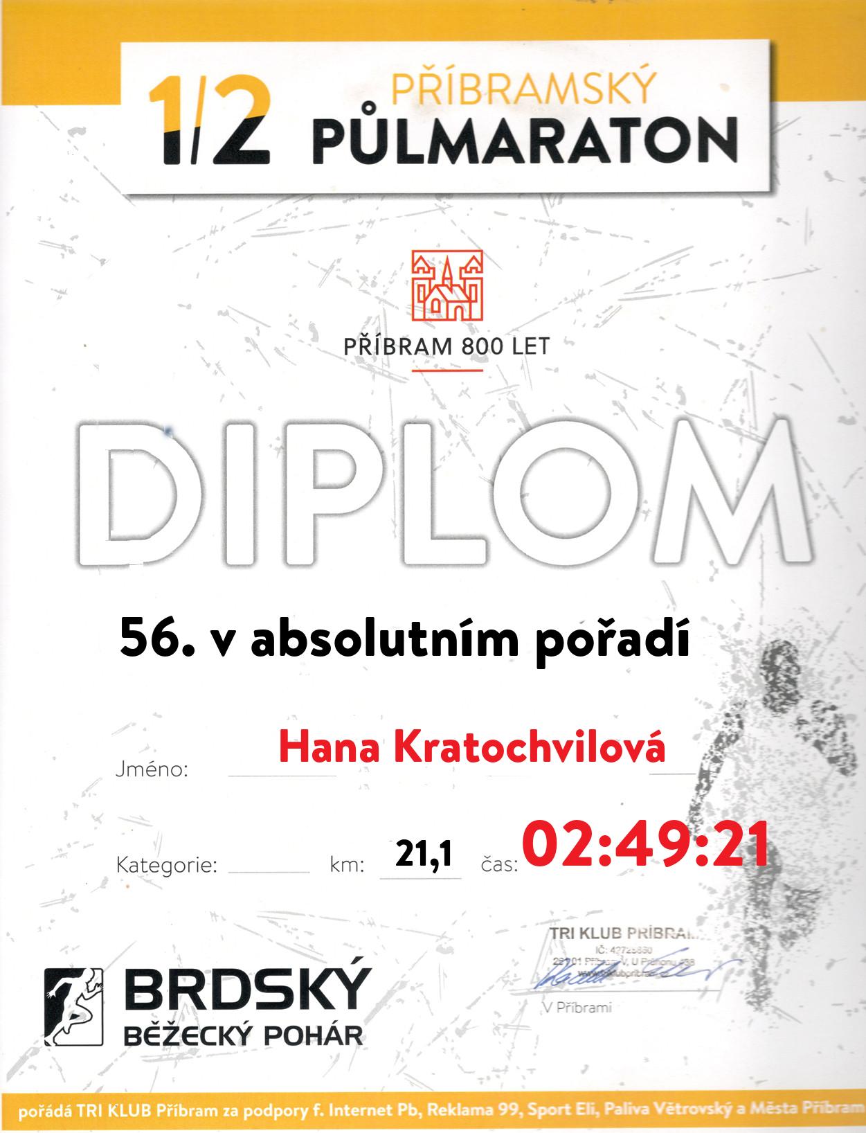 | 56 . Diplom | 02:49:21 | Kratochvilová | Hana | 1993 | Příbram | 48 | 18. | 131 |